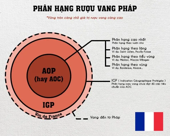 Rượu vang Pháp có quá nhiều thứ khác nhau, với các sắp xếp hạng và đặt tên rất cầu kỳ. Nên nếu không biết đại cương các quy luật chi phối lãnh vực này. Bạn sẽ không sao nắm vững được những đặc điểm và giá trị của chúng. Luật lệ rượu vang của đất nước này, căn cứ phần lớn trên nguồn gốc địa dư, tức là vùng trồng nho. Luật được thực thi bởi cơ quan gọi là Institut National Des Appellations D’origine (INAO).